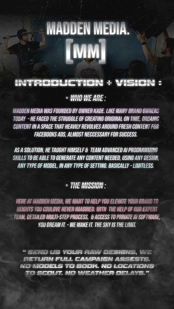 I came in with zero experience using AI for content. Madden Media built the entire workflow for me—from concept to visuals—and the results speak for themselves. The visuals look premium, the turnaround was fast, and my brand finally looks the way I always imagined.